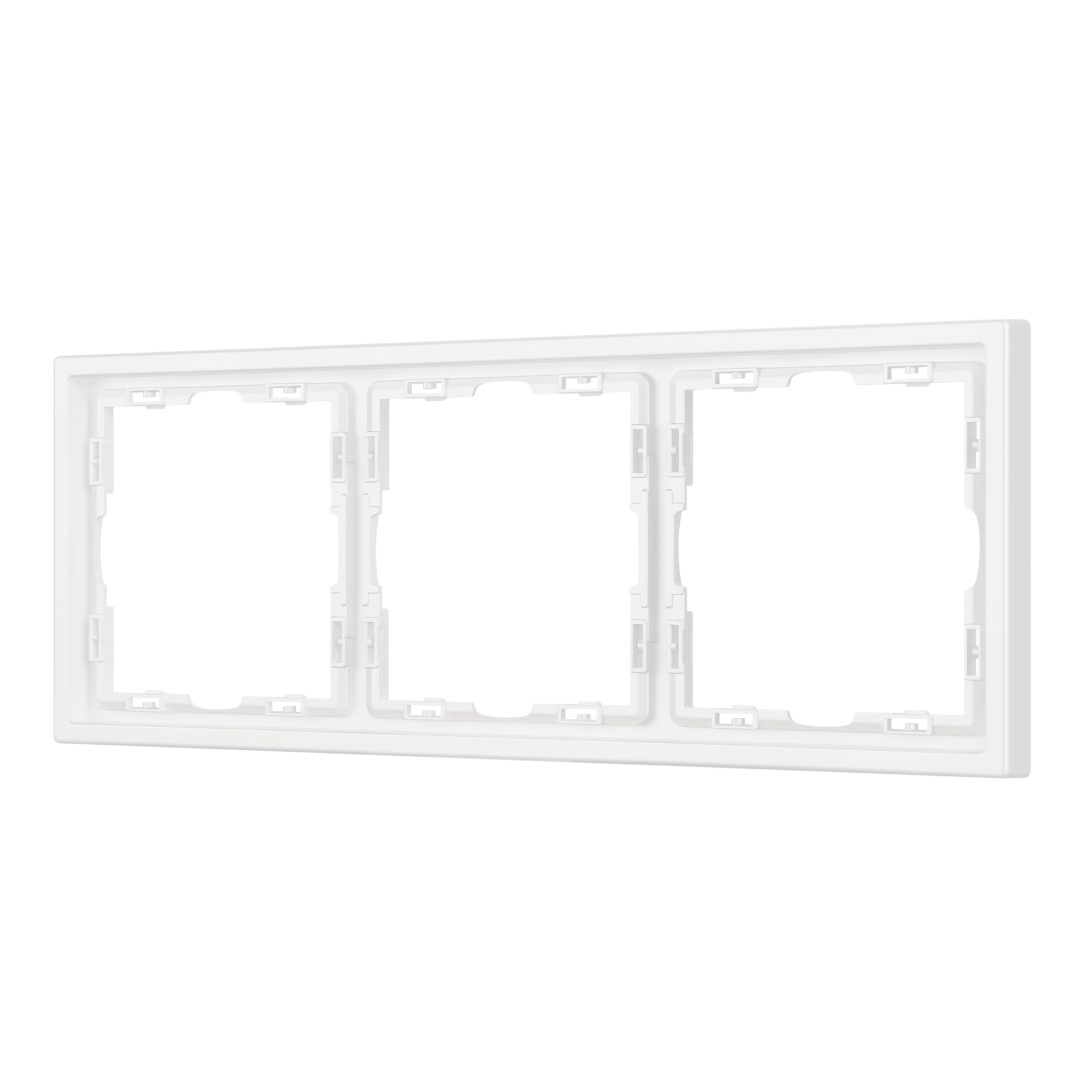 Рамка пластиковая на 3 поста, под встраиваемый механизм. Цвет - белый, с Soft-Touch покрытием. Среднего уровня герметичности IP20. Ориентация монтажа горизонтальная.